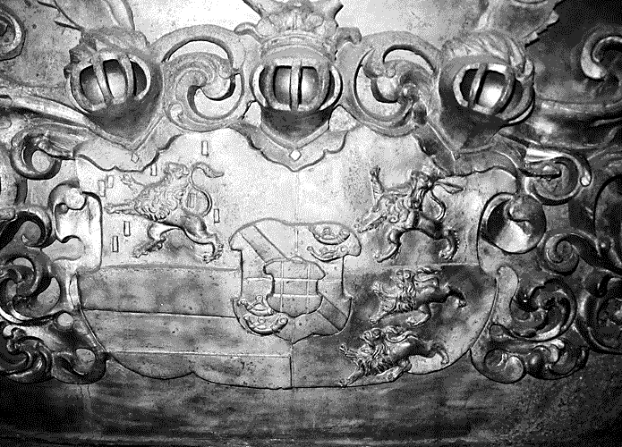 Wappen an der Kopfseite des restaurierten Zinnsargs Moritz zur Lippe-Brakes.
